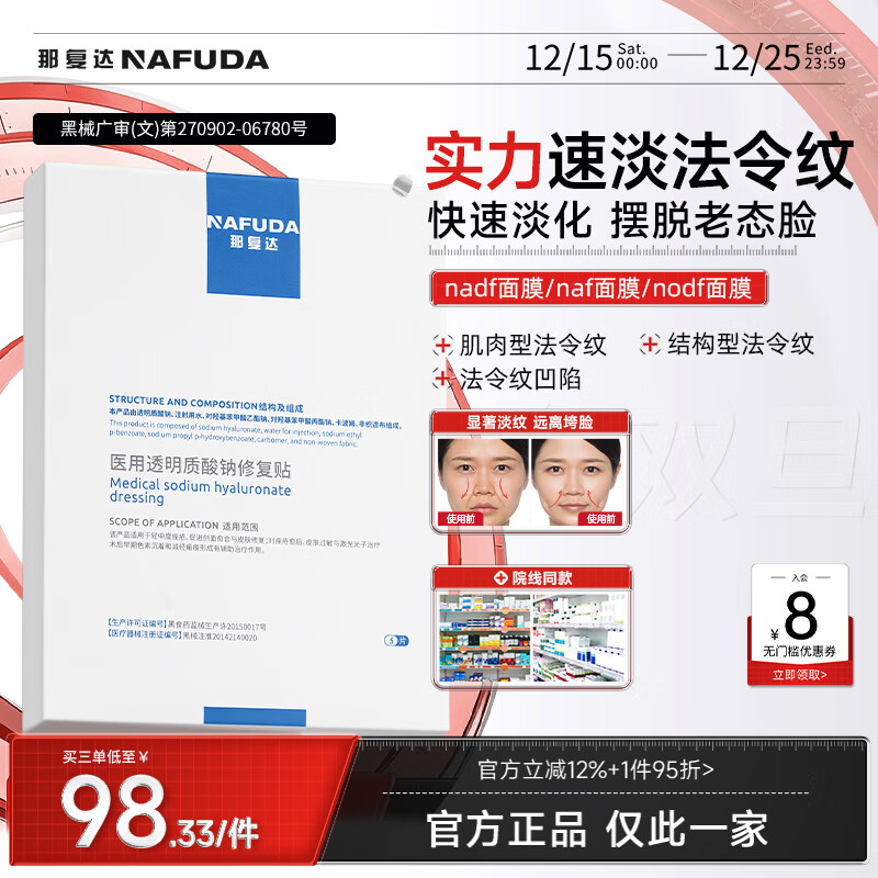 那复达nodf敷料面膜nadf提拉面膜法令纹naddf面膜医用透明质酸钠nnadf 两盒划算装【淡化深度法令纹】