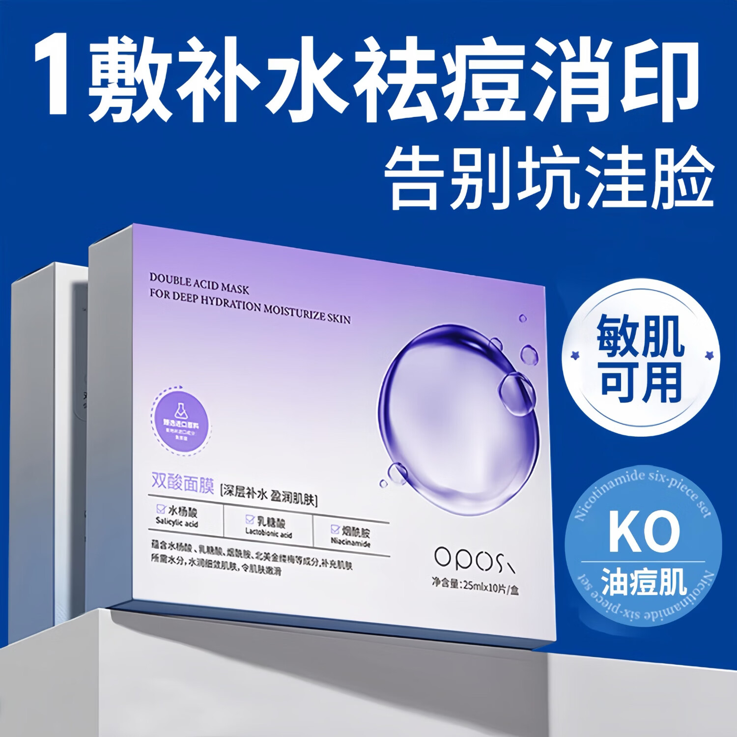 OPOSi水杨酸面膜男女壬二酸补水控油祛痘淡印收缩毛孔清洁黑头修护凝胶 【收敛毛孔】水杨酸面膜10片*2