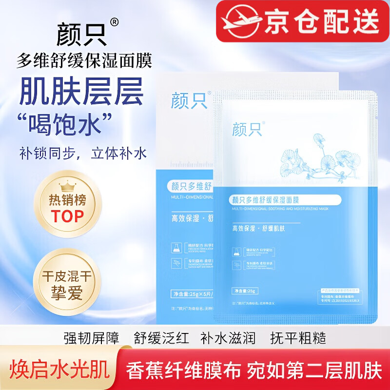 颜只【旗舰正品】多维舒缓保湿面膜益生菌积雪草修护紧致补水焕亮男女 一盒5片+赠1片【颜只舒缓面膜】