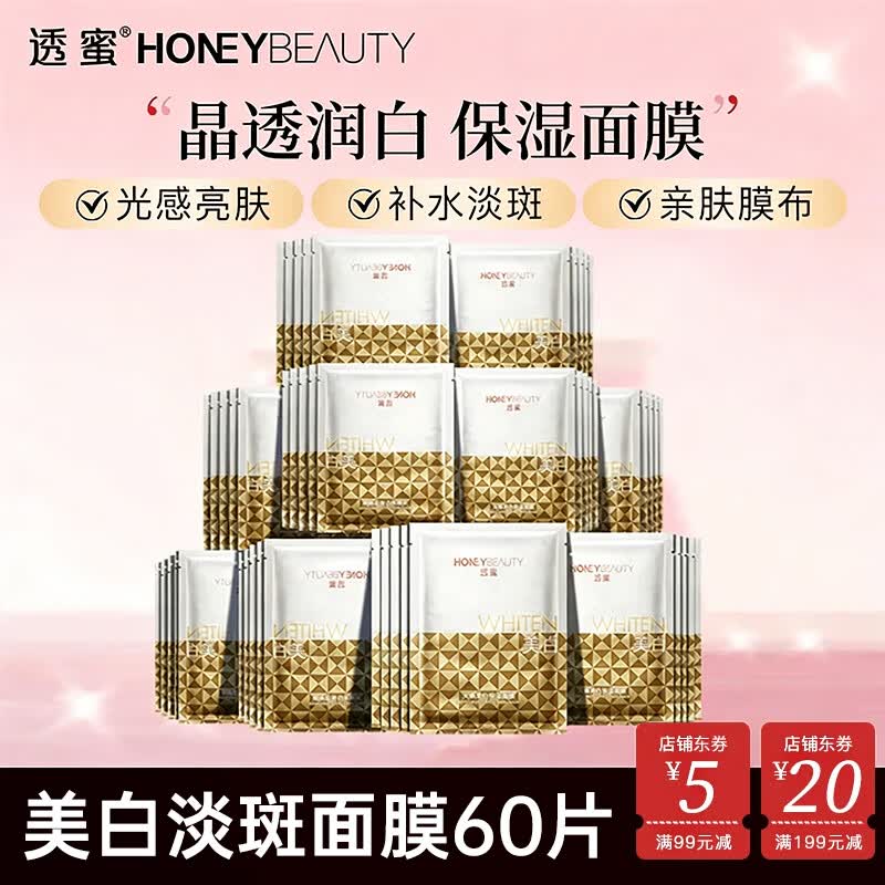 透蜜 补水美白面膜女 改善暗沉细致毛孔提亮肤色玻尿酸保湿面贴膜礼物 美白淡斑面膜-60片