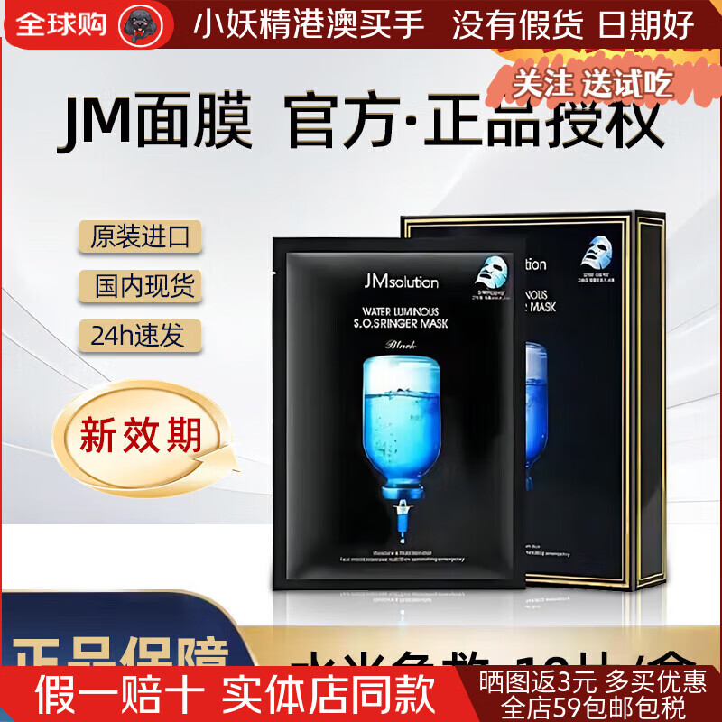 JMsolution肌司研面膜急救水光蚕丝蜂胶蜂蜜海洋珍珠保湿 补水水母提亮润肤 1盒深海急救水光补水面膜10片