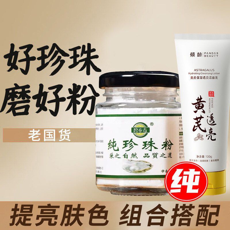 珍珠粉+洗面奶组合老国货紧致提亮修护细腻嫩肤面膜补水保湿正品