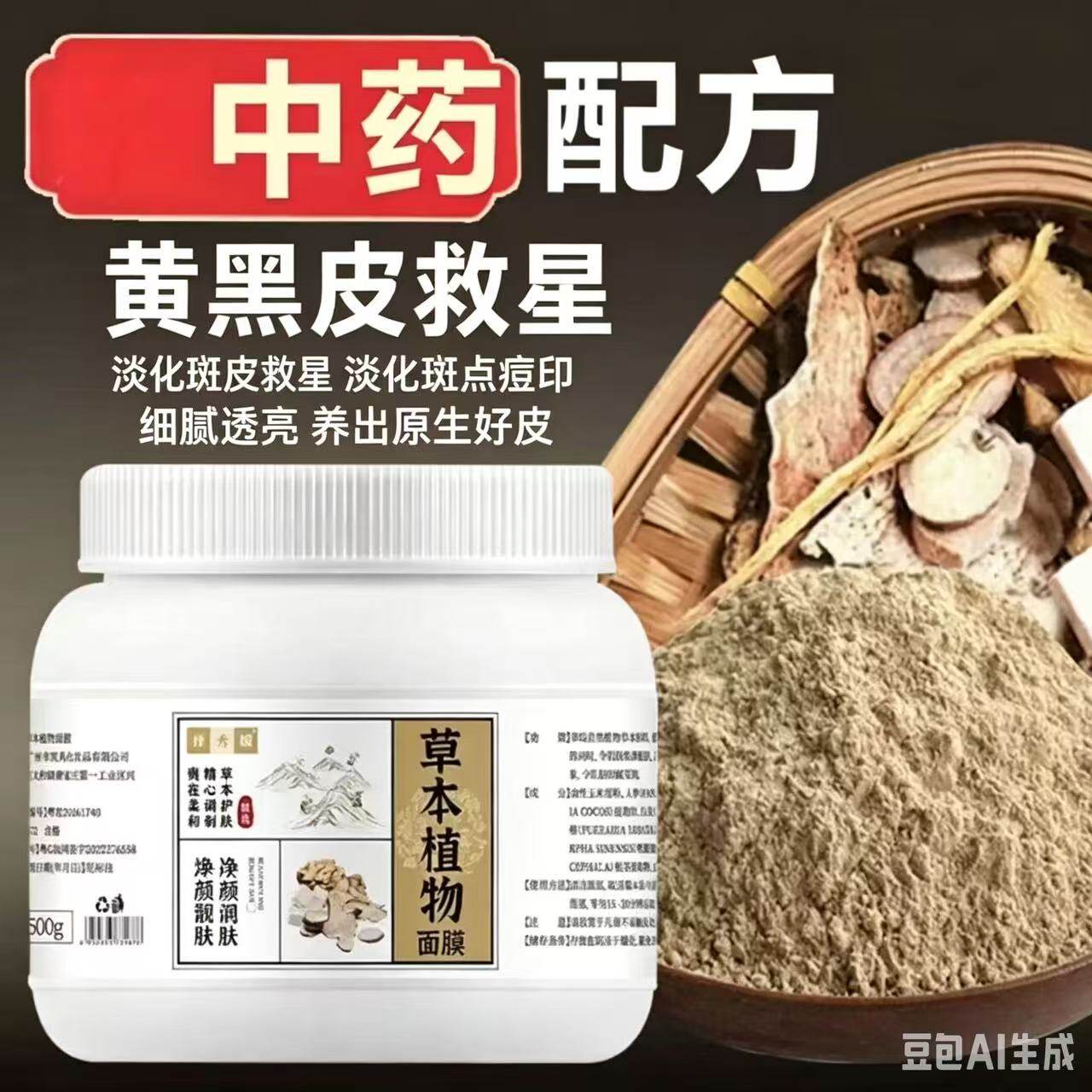 纯中药面膜粉淡斑祛斑美白液去黄提亮面膜粉去闭口粉刺七子白同款