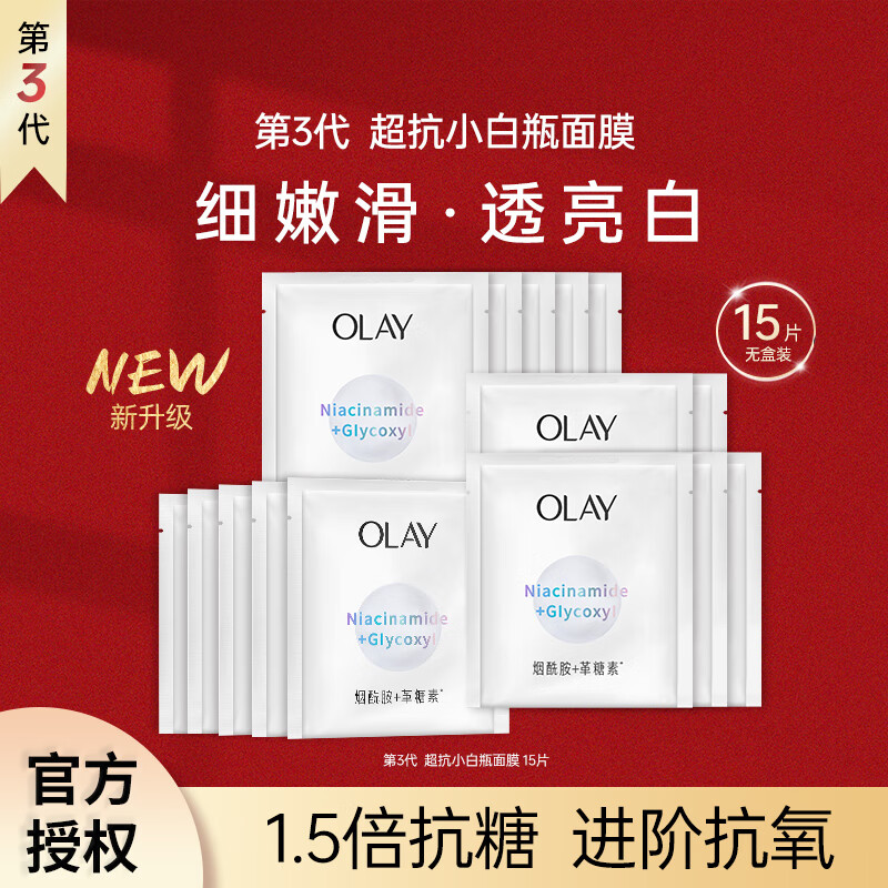 玉兰油(OLAY)3.0超抗小白瓶面膜美白提亮祛斑保湿抗老送老婆送妈妈母亲节礼物 【店长推荐】超抗面膜15片