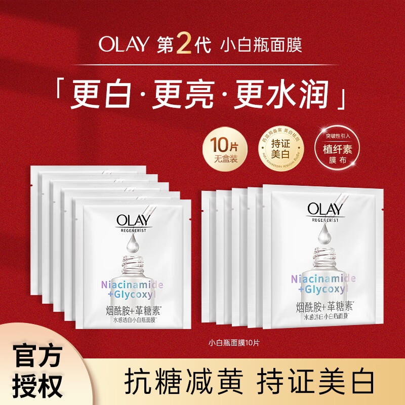 玉兰油(OLAY)2.0抗糖小白瓶面膜烟酰胺精华祛斑美白紧致送老婆送女友生日礼物 【店长推荐】抗糖小白瓶面膜10片(26.10效期)