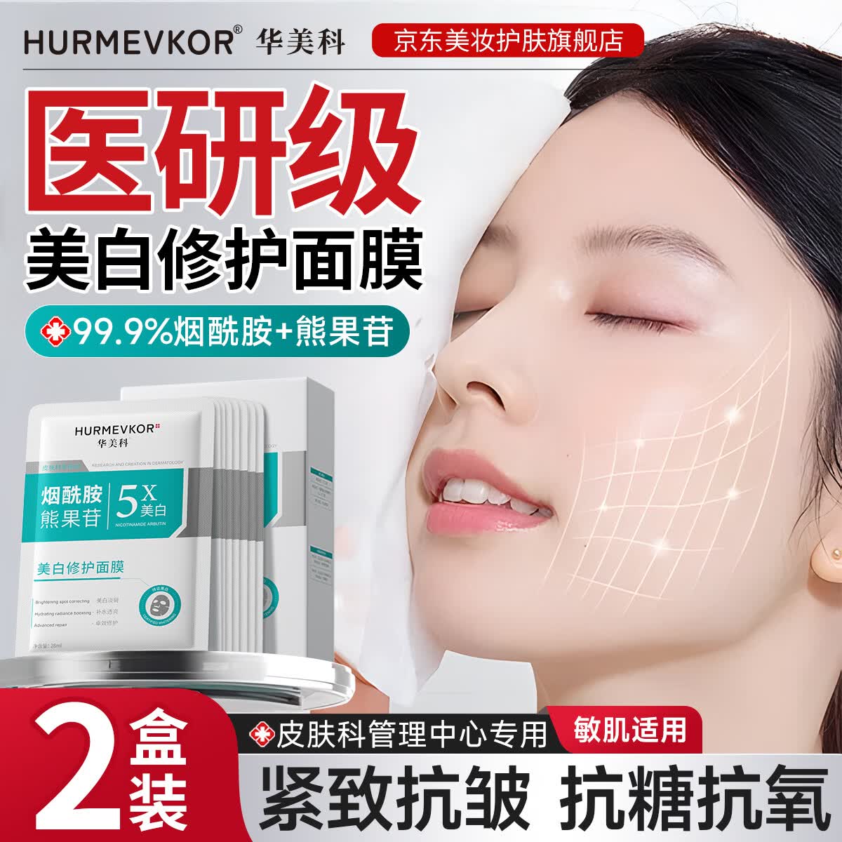 华美科烟酰胺美白淡斑面膜补水保湿美白去黄气暗沉提亮肤色紧致抗皱面膜 【美白补水+美白淡斑】2盒