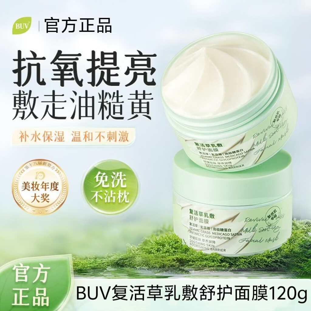 BUV复活草面膜【陈妍希代言】改善肤色暗黄提亮熬夜暗沉保湿敏感肌 【1瓶】BUV复活草面膜120g 【正品保证,现货速发】
