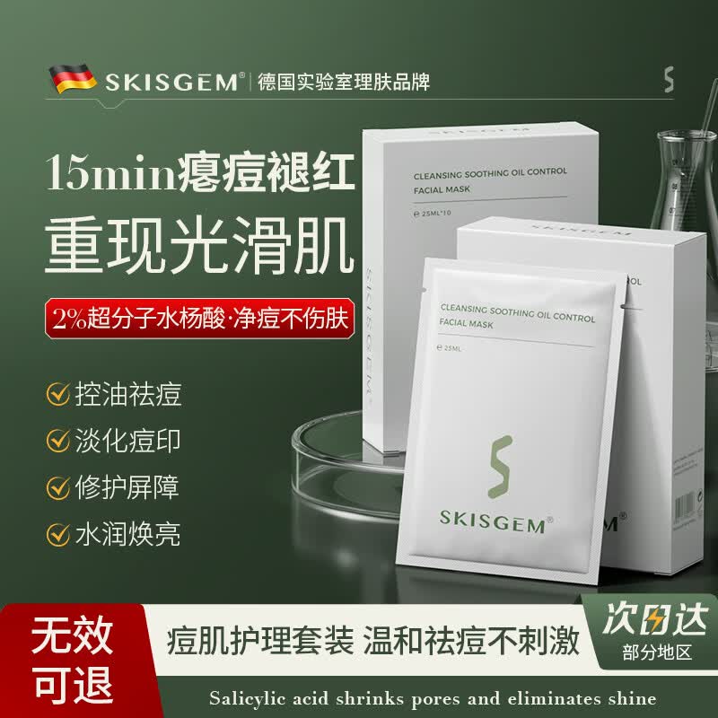 SKISGEM德国进口水杨酸祛痘面膜祛痘印控油祛痘毛孔收缩控油修护男女士 【消痘淡印|中度痘痘适用】祛痘面膜20片