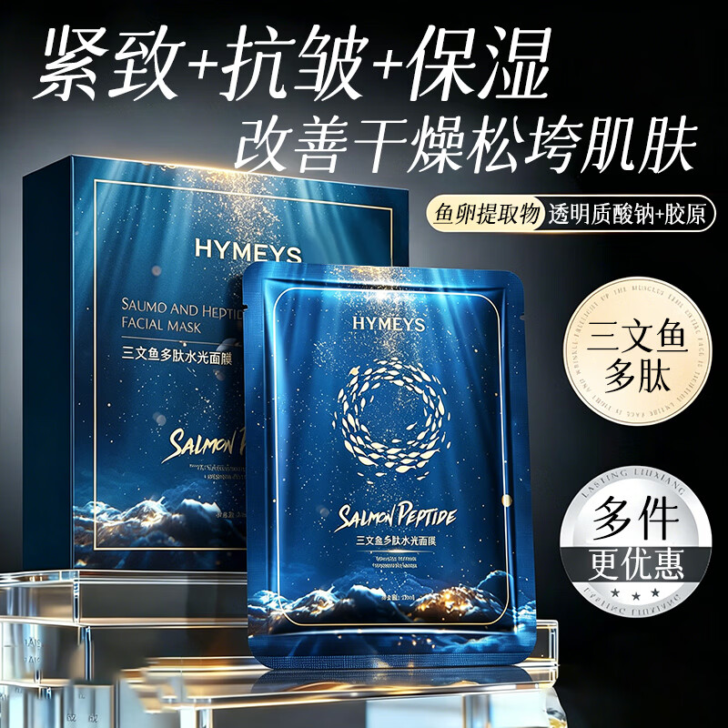 形象美面膜抗皱紧致补水保湿30-40-50岁女人多肽水光女士男专用护肤 三文鱼多肽水光面膜25ml*5片一盒