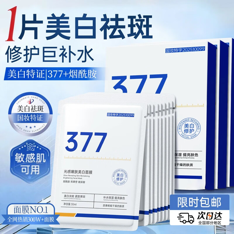 初蔓面膜抗皱紧致抗衰老补水美白淡斑胶原蛋白保湿男女士去黄淡化细纹 【美白淡斑】377光感嫩肤美白面膜30ML/盒10片