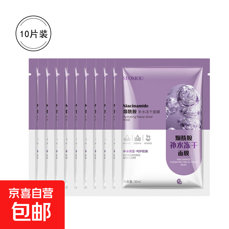 烟酰胺补水冻干面膜贴保湿润颜呵护熬夜护肤男女士四季通用 10片烟酰胺面膜30ml一片(无外盒)