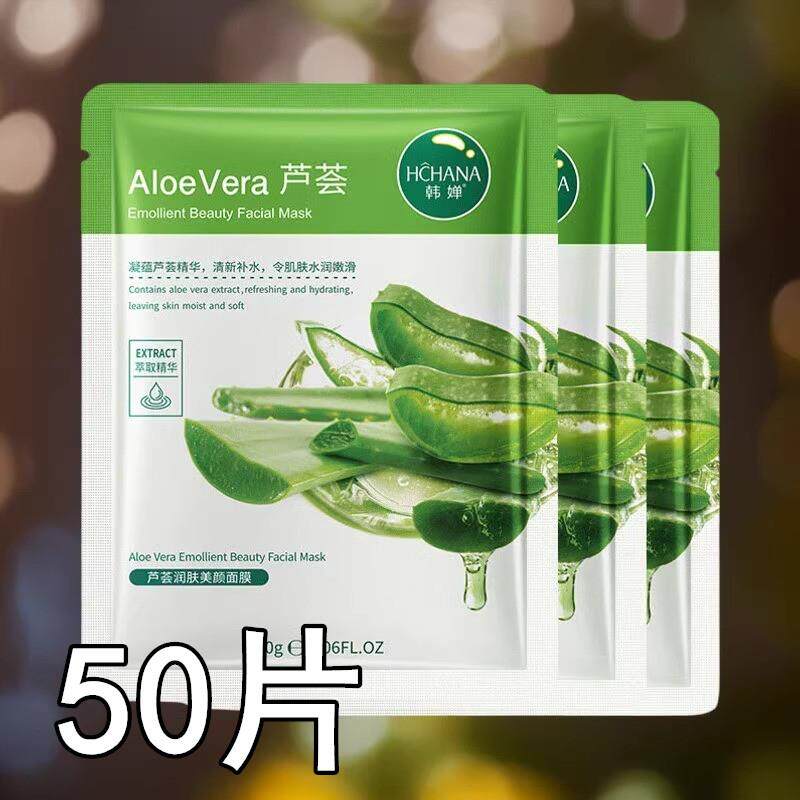 50片芦荟面膜补水保湿美白祛斑提亮肤色去黄气改善暗沉女男士专用