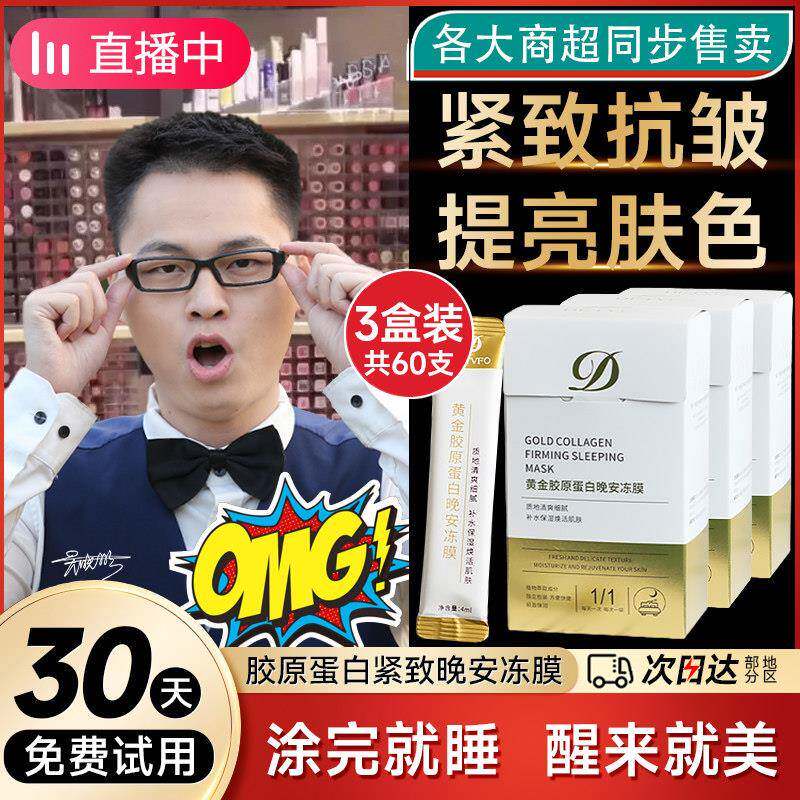 【品牌直营】胶原蛋白晚安冻膜保湿睡眠面膜男女免洗夜间修覆