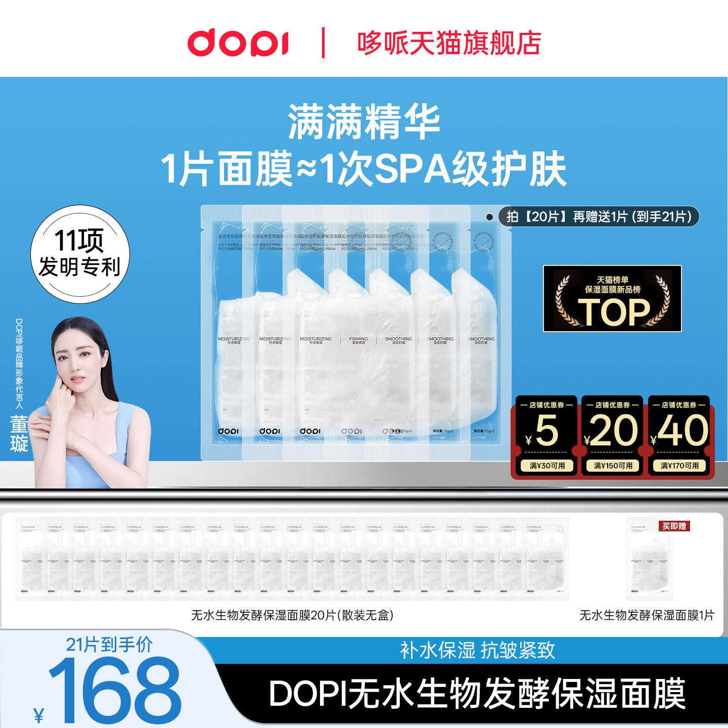官方旗舰店dopi无水保湿面膜生物发酵双抗熬夜提亮补水抗氧白面膜