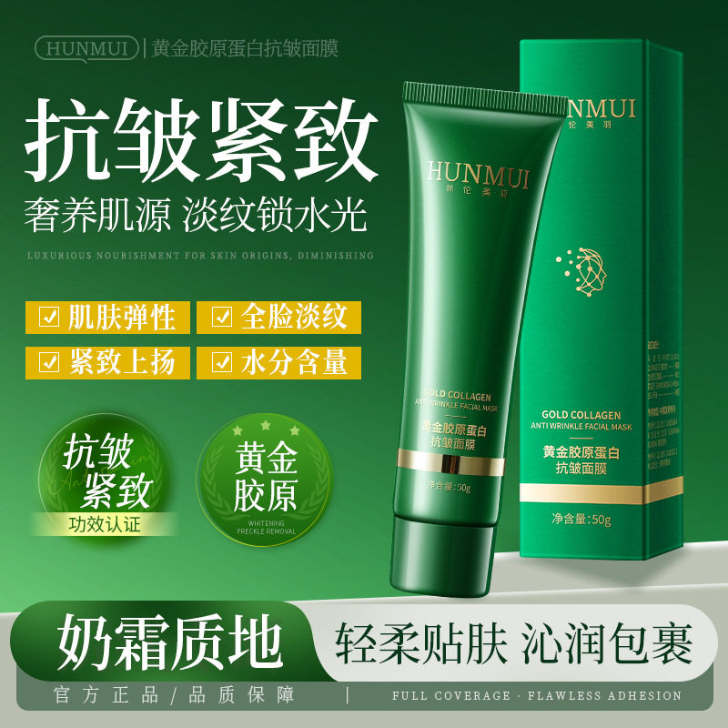 韩伦美羽黄金胶原蛋白抗皱面膜紧致淡纹水润保湿提拉紧致涂抹面膜