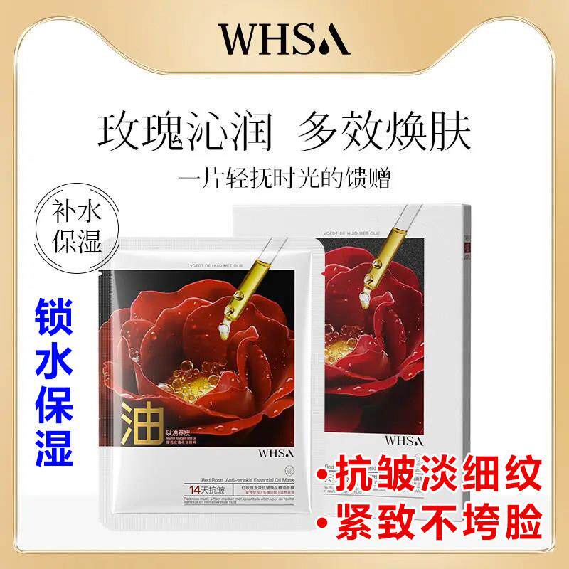 Whsa红玫瑰多效精油面膜贴提拉细纹滋养补水保湿嫩肤