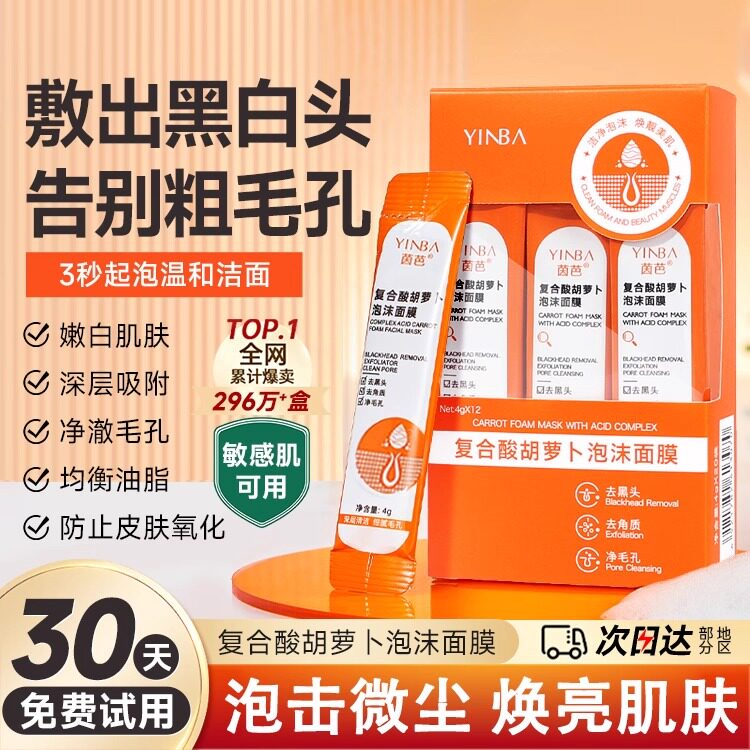 正品复合酸胡萝卜素发泡泡沫面膜果酸深层清洁泥膜黑头白粉刺