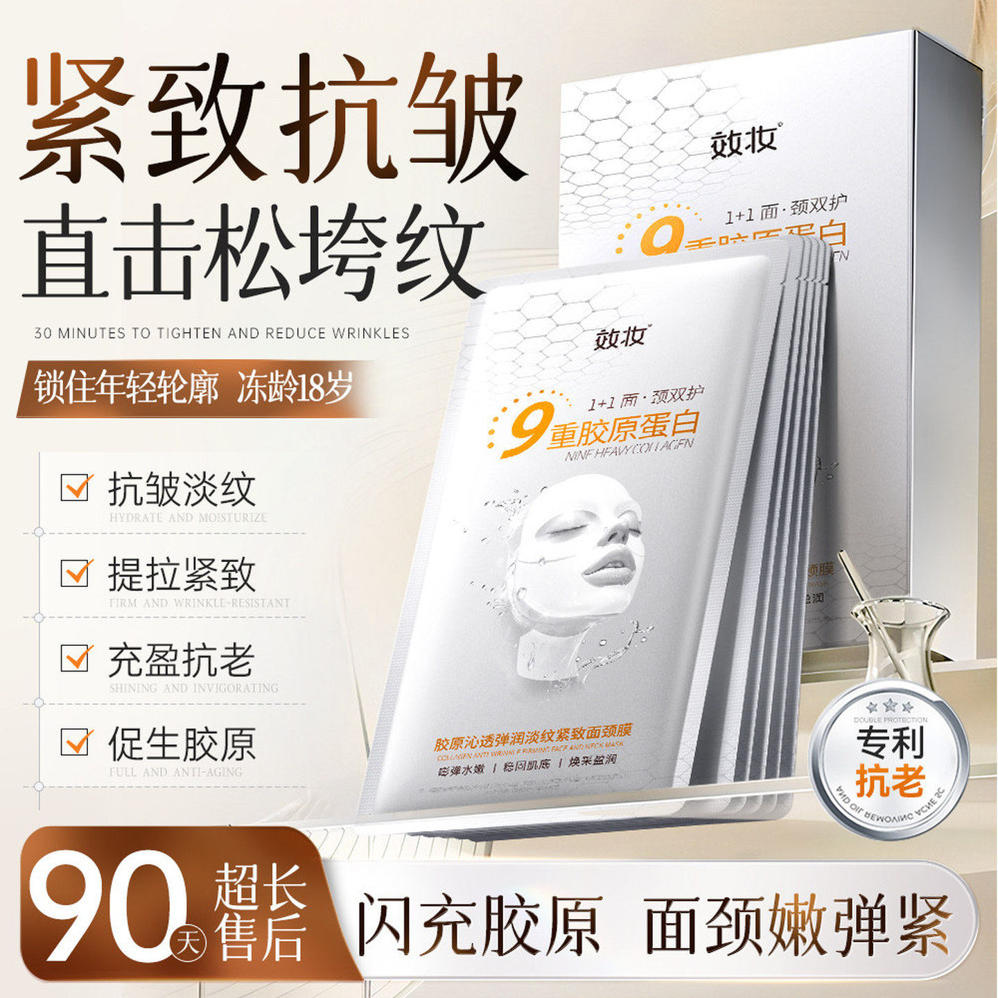 效妆胶原蛋白面膜淡纹提拉紧致面部抗皱颈纹提亮肤色玻色因面颈膜