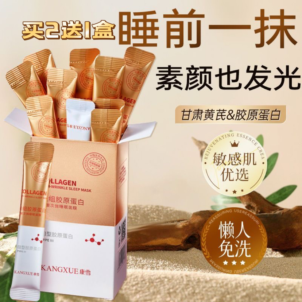 【买2送1】康雪黄芪胶原免洗睡眠面膜紧致淡细纹熬夜去黄提亮次抛