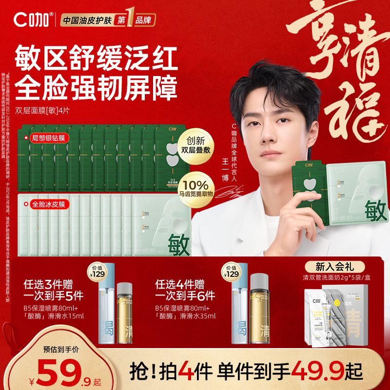 王一博代言】C咖1+1双层面膜补水舒缓泛红修护屏障保湿正品官方