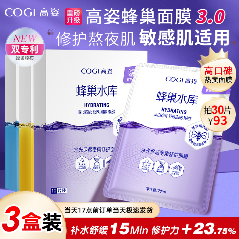 【3盒装】高姿面膜蜂巢水库补水保湿紫色熬夜修护高资官方正品女
