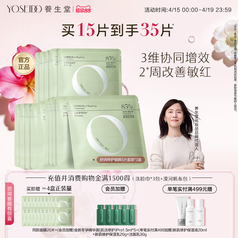 养生堂白桦舒润修护精华面膜敏感肌可用温和保湿舒敏呵护改善红敏