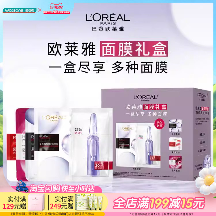 屈臣氏欧莱雅面膜礼盒13片补水保湿水光充盈