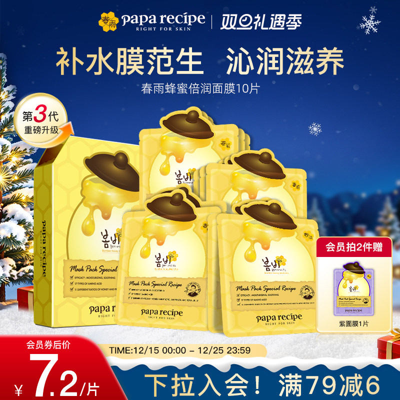 【新升级】韩国paparecipe黄春雨蜂蜜倍润面膜贴补水保湿正品10片