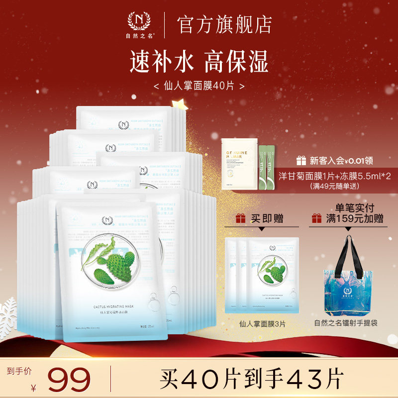 自然之名仙人掌沁润补水面膜轻薄亲肤补水保湿天丝贴片面膜学生女