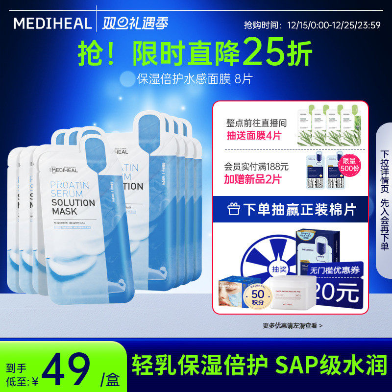 美迪惠尔保湿倍护水感面膜抗皱保湿补水均衡敏感肌肤男女8片装