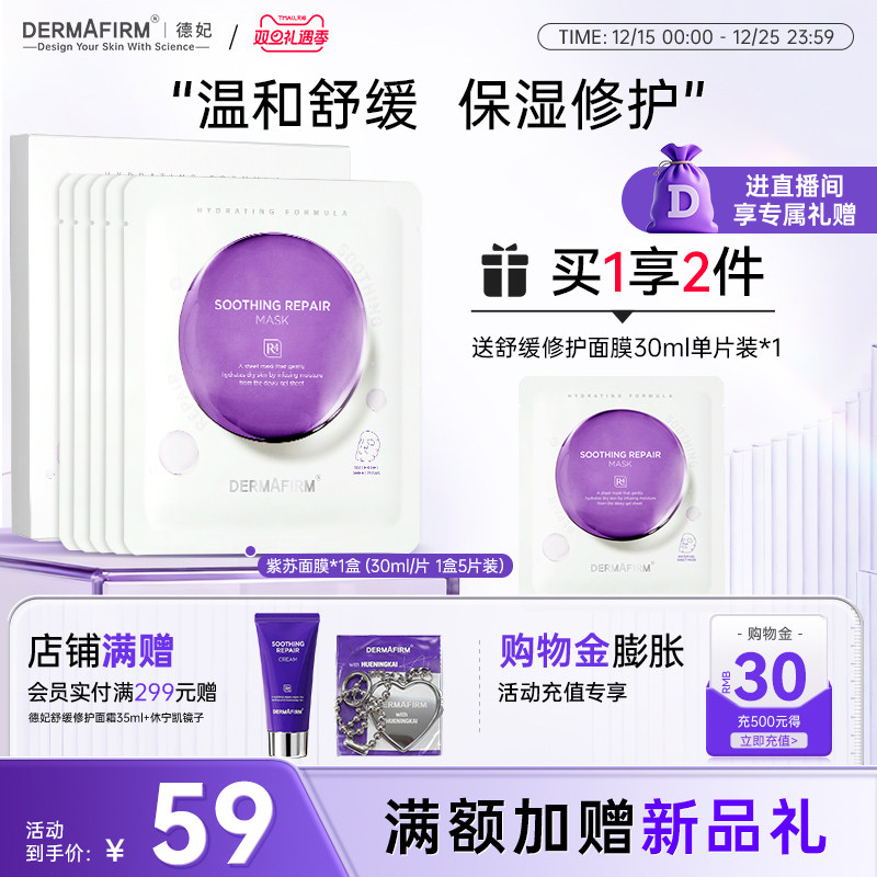 德妃紫苏面膜精华舒缓补水保湿修护养肤贴片面膜正品官方旗舰店