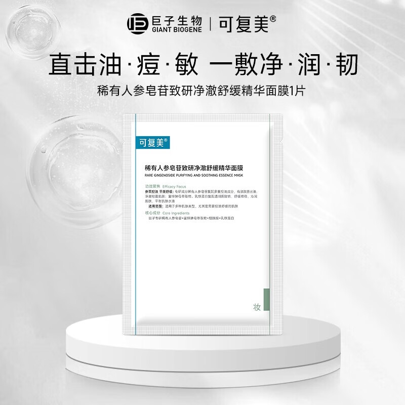 可复美秩序面膜 稀有人参皂苷致研净澈舒缓控油精华面膜 祛痘舒缓控油 秩序面膜2片
