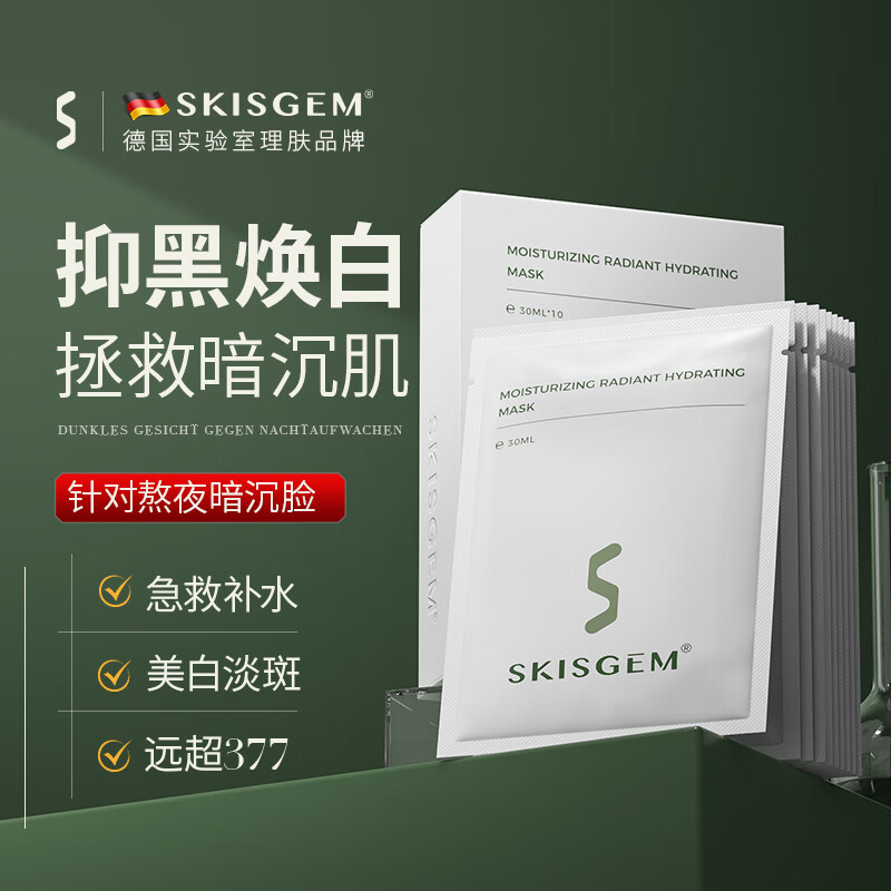SKISGEM美白面膜1盒*10片淡斑抗皱紧致补水保湿去黄提亮肤色德国进口礼物