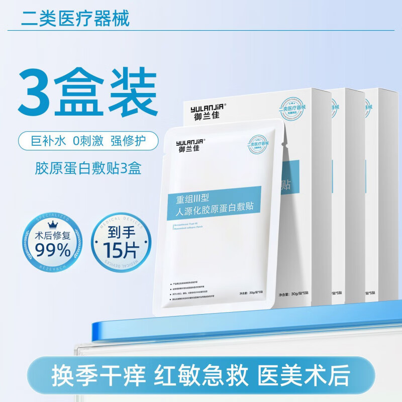 通用御重组III型人源化胶原蛋白敷贴二类械号无菌医美术后护理补水保 重组胶原蛋白面膜【3盒】80%顾客选择 【二类器械 品牌直营】