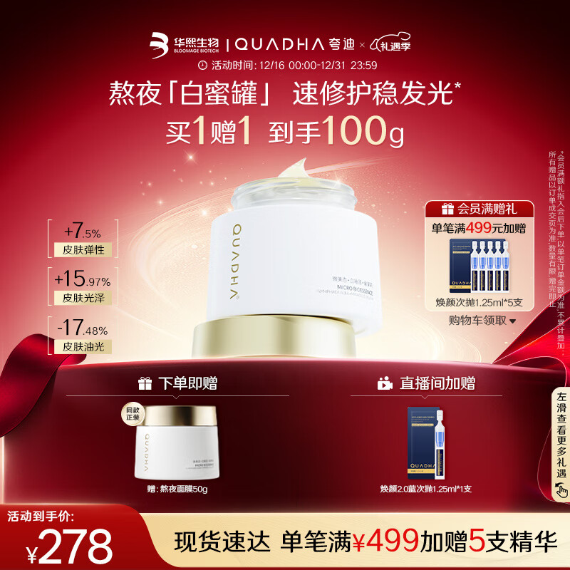 夸迪熬夜弹嫩盈透涂抹面膜50g补水保湿紧致抗皱修护圣诞节礼物女