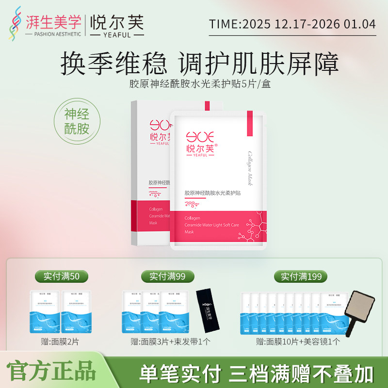 悦尔芙胶原蛋白神经酰胺维稳屏障舒护提亮水光面膜补水保湿贴
