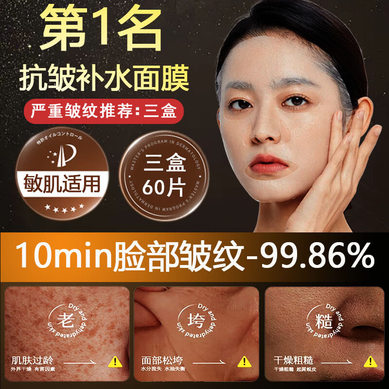 南京同仁堂面膜抗皱紧致补水保湿细化淡纹衰老去黄气提亮肤色暗沉男女士*3盒