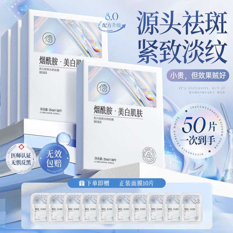 儒意美白淡斑面膜补水烟酰胺提亮肤色去黄气暗沉熬夜急救抗老正品 50片 【源头祛斑紧致淡纹】