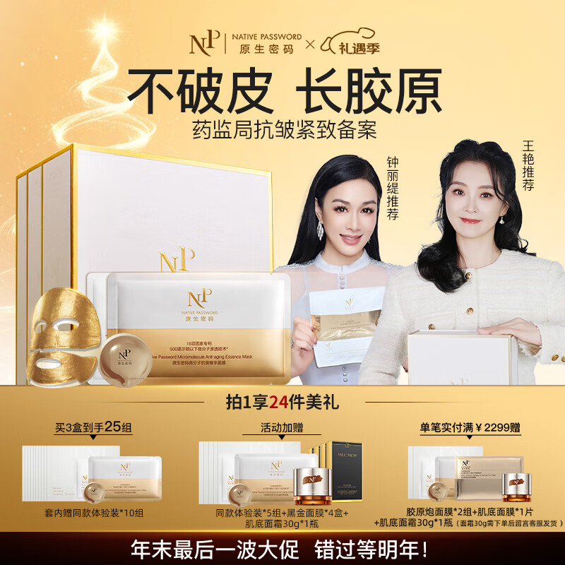 原生密码胶原炮面膜3盒微分子精华补水抗皱紧致提拉淡化细纹毛孔送礼