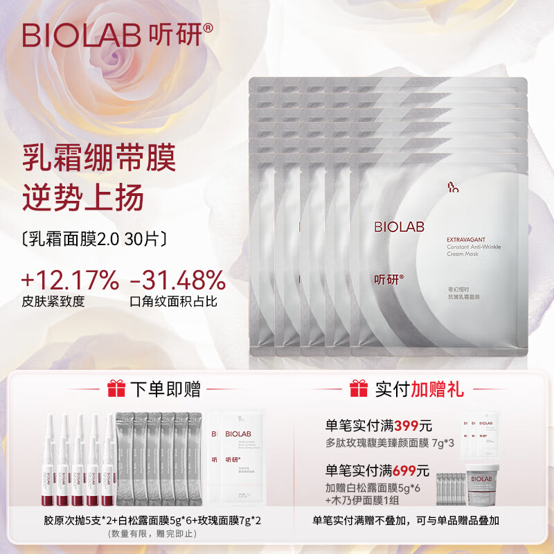 听研BIOLAB奢幻恒时抗皱乳霜面膜 抗皱紧致保湿 节日礼物 乳霜面膜2.0 30片