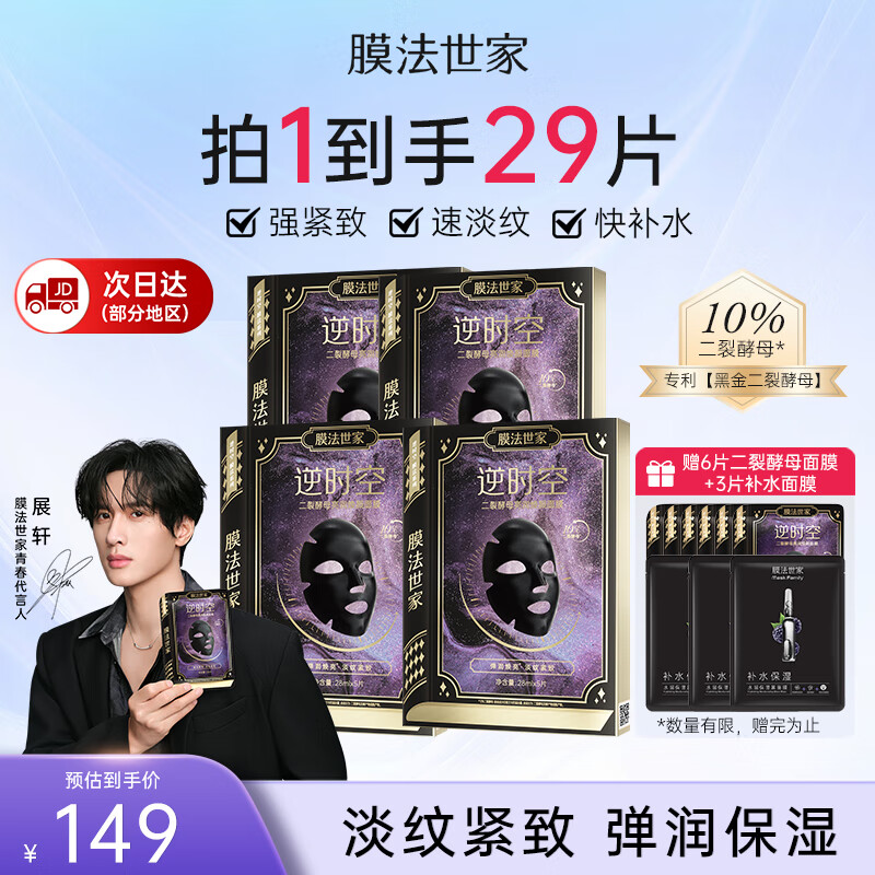 膜法世家面膜二裂酵母抗皱紧致淡纹提亮熬夜补水保湿逆时空魔法世家黑面膜 10%二裂酵母面膜20片