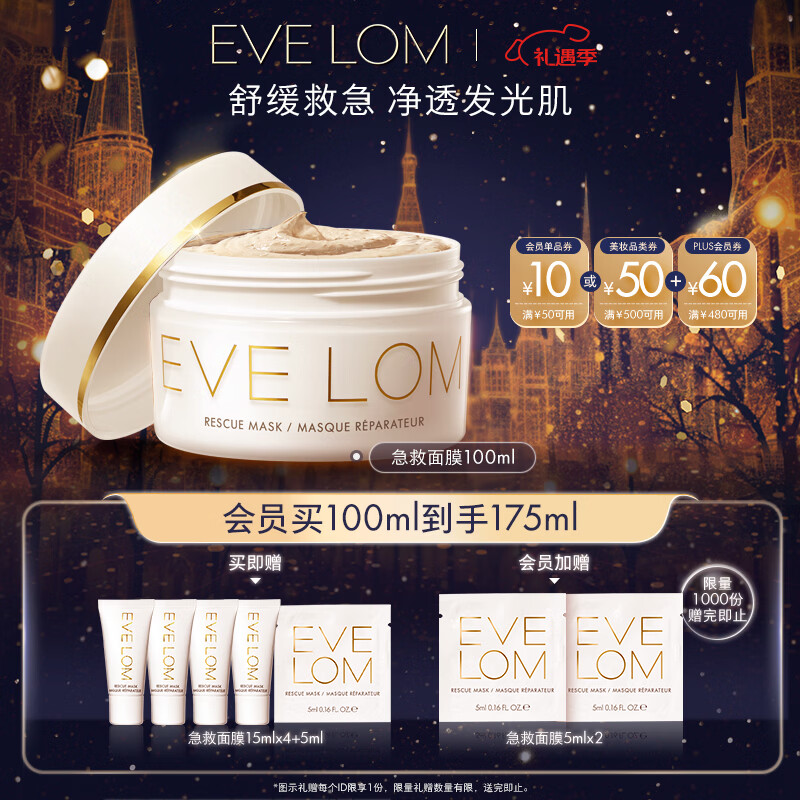 EVE LOM伊芙珑亮采洁净面膜100ml 舒缓急救保湿 圣诞节礼物送女生