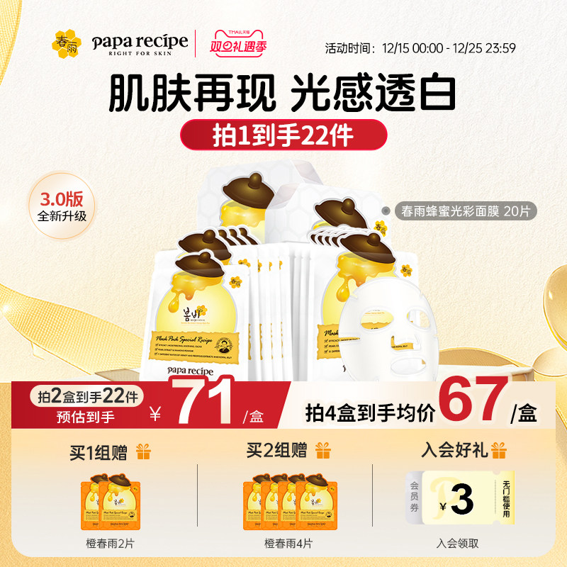 韩国原装春雨光彩面膜滋养提亮白20片改善暗沉保湿舒缓官方正品女