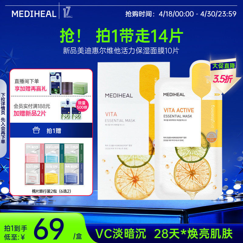 【重磅升级】美迪惠尔官方旗舰店精研维他活力保湿面膜弹嫩正品女