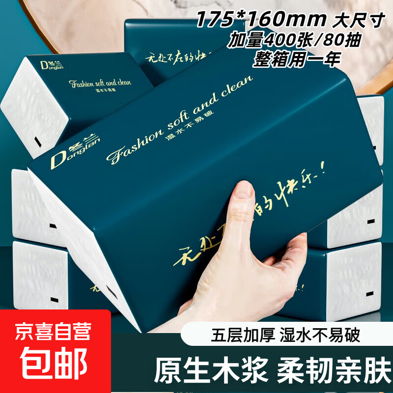 整箱8400张20包抽纸加厚尺寸餐巾纸面巾纸擦手家用卫生纸原木纸 【160*175mm】 5层 80抽*3包