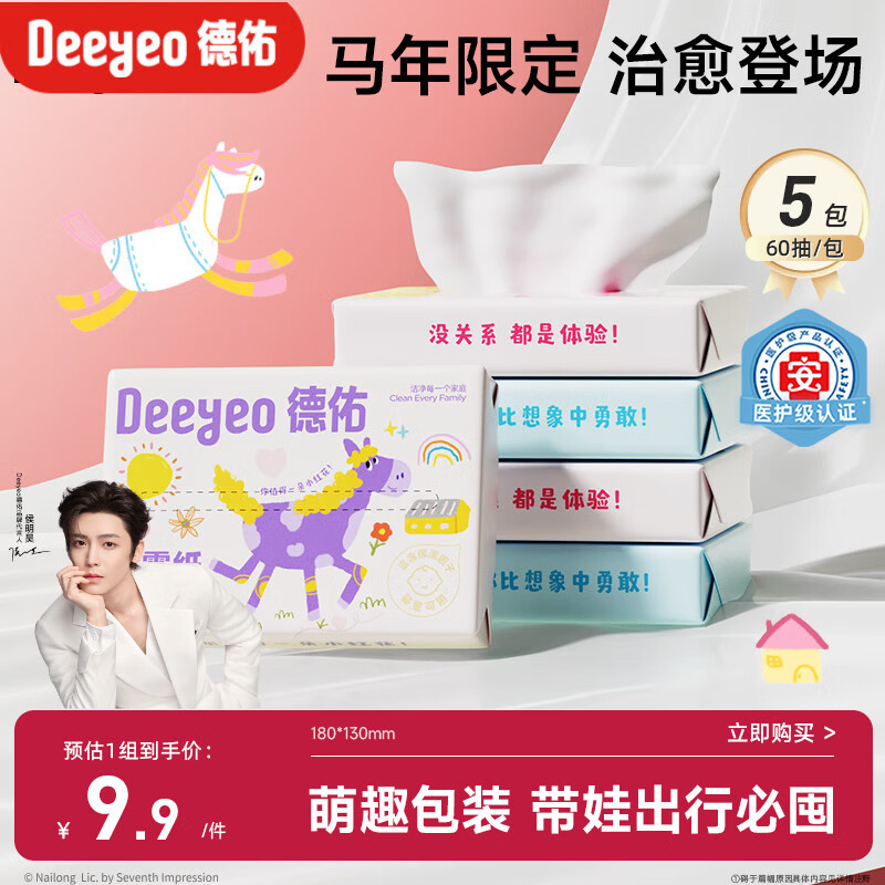 德佑婴儿云柔巾保湿纸巾乳霜纸60抽5包儿童超柔软抽纸