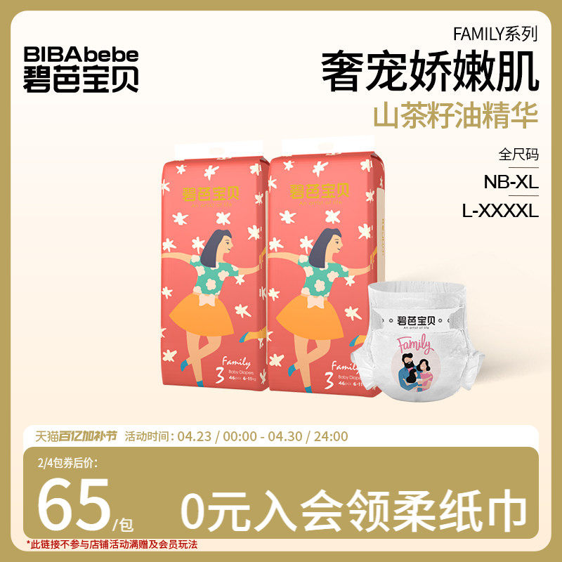 碧芭宝贝family伐木累婴儿纸尿裤超薄透气训练裤尿不湿2包