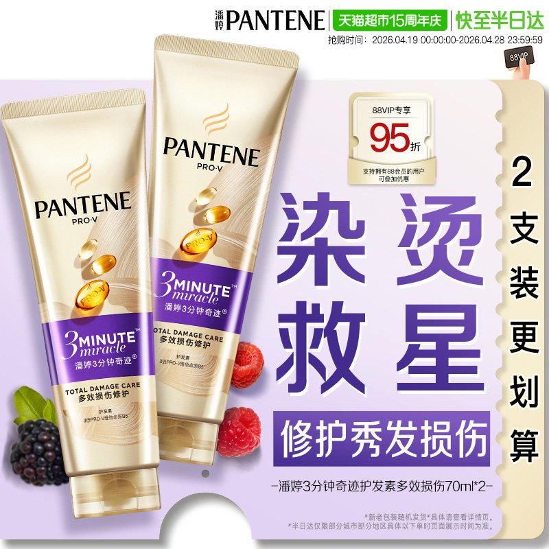 潘婷3分钟奇迹发膜级护发素修护损伤改善干枯毛躁柔顺顺滑女正品