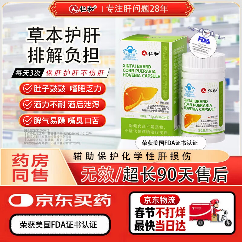 仁和护肝胶囊1瓶装 护肝片新态牌玉米葛根枳椇子胶囊养肝护肝