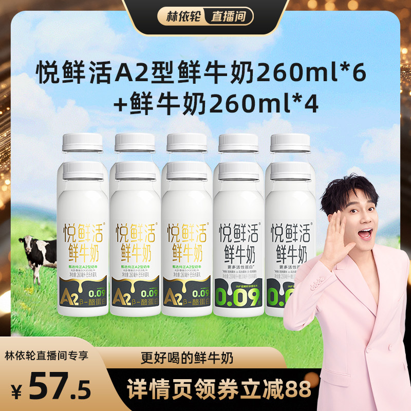 【林依轮直播间】悦鲜活A2型鲜牛奶260ml*6+原味鲜牛奶260ml*4